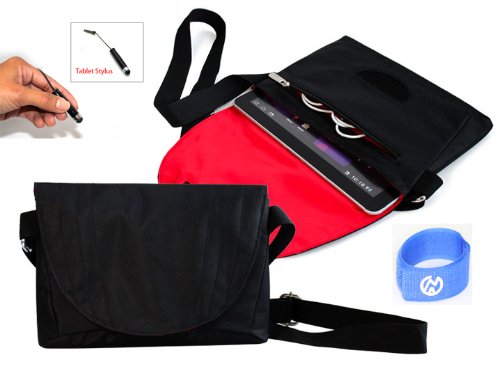 HTC Anytime Cross Bag with Front Zipper Pocket For NEW HTC Jetstream 10-Inch Tablet Color Black/Red + Tablet Stylus + EnvyDeal Velcro Cable Tie