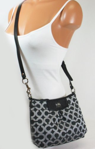 Coach Signature Madison Op Art Lurex Swingpack Crossbody Messenger Bag 46665 Gunmetal